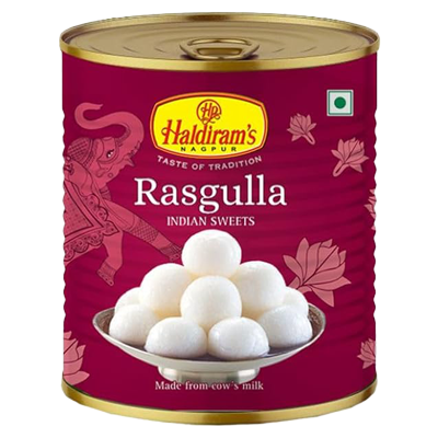 Haldirams Rasgulla is a classic Indian sweet made from soft, spongy balls of chhena (cottage cheese) soaked in light sugar syrup. This traditional Bengali dessert is loved for its melt-in-the-mouth texture and mildly sweet flavor. Packed in a sealed tin, it ensures freshness and authentic taste, making it a perfect treat for festivals, celebrations, or after-meal indulgence.